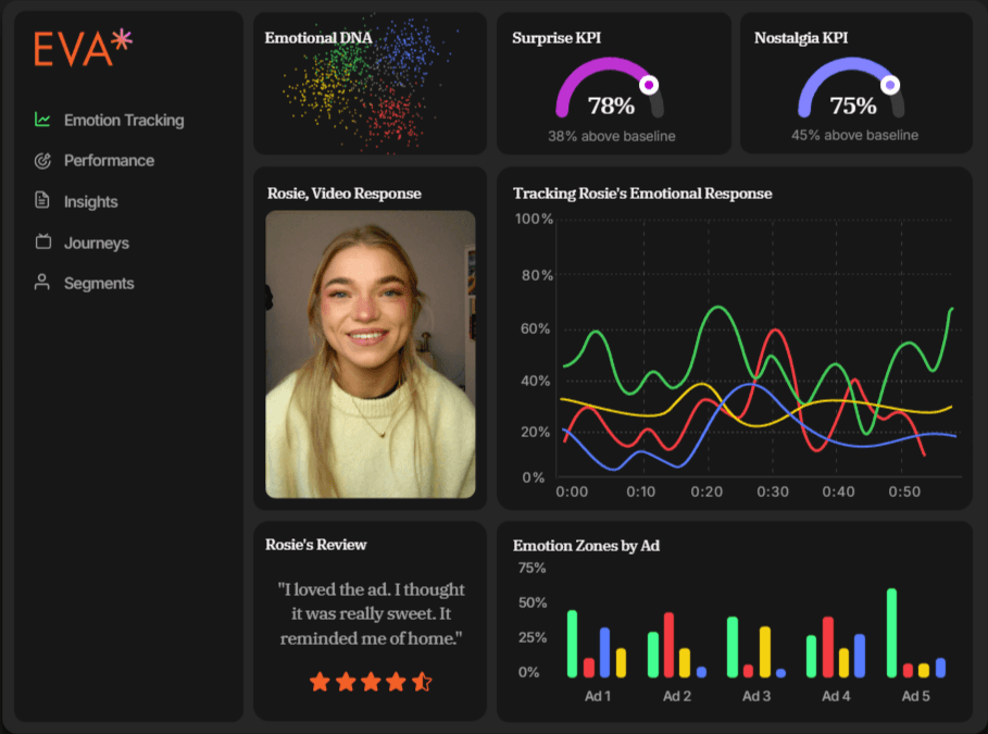 Great ads connect with consumers emotionally. EVA's more nuanced emotion tracking and analytics help you develop more meaningful ideas.